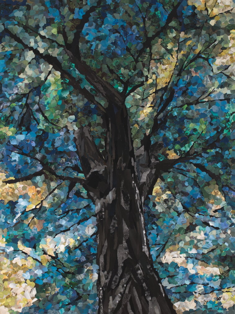 Tree canopies, from the unique perspective of looking up, inspire my art. This collection of images has similar structure with variations in color. These works evoke feelings of losing (or finding) oneself in the beauty and awe of nature.